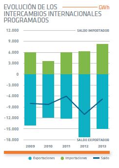 Como se puede apreciar, en los cuatro últimos años, el sistema ha exportado entre 6.000 y 10.000 GWh, lo que representa entre el 2 y el 4% del total de la energía producida. Esa tendencia ha sido ininterrumpida en los últimos diez años. Es decir, se da la paradoja de que nuestro país es exportador de energía eléctrica, pero gran importador de energía primaria -petróleo, gas, carbón-, es decir, de energía no transformada en otra para su utilización.