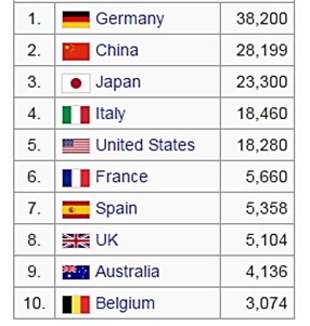 Países con más potencia fotovoltaica instalada al final de 2014 (en MW)
