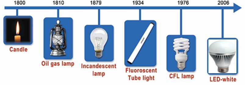 Tras la utilización del fuego como procedimiento de iluminación durante miles de años, se produjo un cambio trascendental en el siglo XIX con el descubrimiento de la electricidad y de la invención de la bombilla de filamento por parte de T. A. Edison en 1879, ya que a partir de ese momento la iluminación entró en una nueva era, caracterizada por la generalización del uso de las bombillas incandescentes a lo largo del siglo XX.