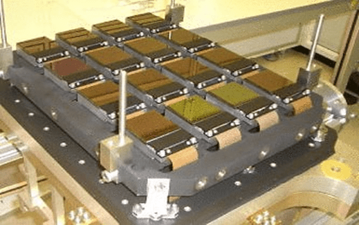 La siguiente imagen muestra un mosaico de 16 matrices de detectores IR, instalado en la cámara principal del telescopio VISTA (Visible and Infrared Survey Telescope for Astronomy), instalado en Cerro Paranal, en el observatorio de la ESO (European Southern Observatory) en Chile; el telescopio VISTA está destinado a observar el cielo del hemisferio sur: