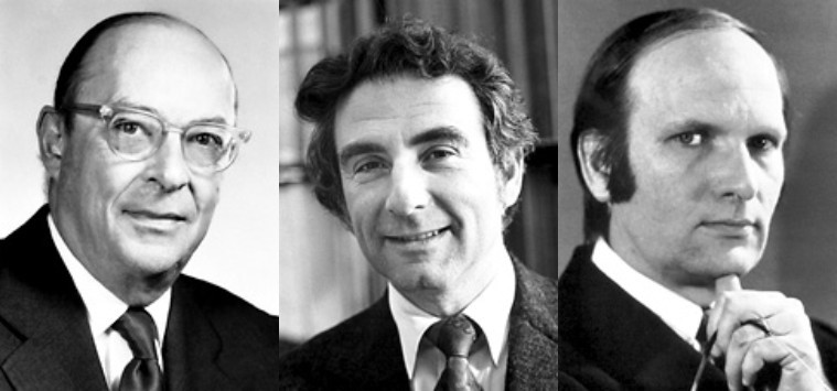 Los premiados con el Nobel de física de 1972 por la teoría BCS. Iquierda, J. Bardeen, Centro, L. N. Cooper. Derecha: J. R. Schrieffer. Imagen: Nobel Prize.org