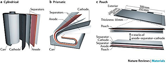 Como hemos visto en anteriores post de este blog, podemos decir que la estructura de una batería de ion-litio está formada por un cátodo, un electrolito y un ánodo diferentes del resto de baterías. Utiliza como cátodo colector de corriente una capa de aluminio cubierta con un óxido de cobalto y litio; como electrolito, un solvente orgánico en el que se encuentra diluida una sal de litio; y como ánodo, un colector de corriente compuesto por una lámina de cobre recubierta con una capa de carbono.