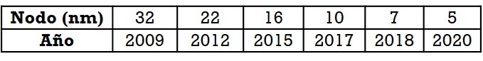Ha habido también lo que podríamos denominar “Nodos intermedios” (28 nm, 20 nm, 14 nm), eso se debe a razones de los procesos de fabricación y las dificultades que entraña pasar de un nodo al siguiente en lo que a inversiones respecta. Lo analizo al final del artículo.