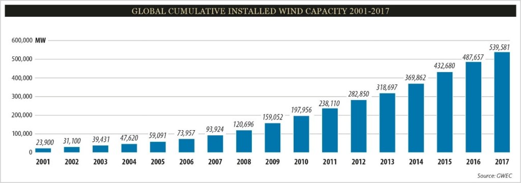 Al comenzar este siglo, los combustibles fósiles todavía eran relativamente baratos, pero la creciente preocupación en numerosos países sin recursos energéticos por asegurarse el suministro de energía, unido al calentamiento global y al eventual agotamiento de los combustibles fósiles, facilitaron una expansión generalizada de las energías renovables, fuertemente incentivadas inicialmente en algunos países como Alemania y España y más tarde en otros como Italia, EEUU, etc. La incipiente industria de la energía eólica comenzó a expandirse a un ritmo de crecimiento verdaderamente impresionante, cercano al 25% anual, impulsada por la disponibilidad de grandes recursos eólicos en amplias zonas geográficas del planeta y por la disminución de los costos debido a la mejora de la tecnología y las primas a la producción ya señaladas.
