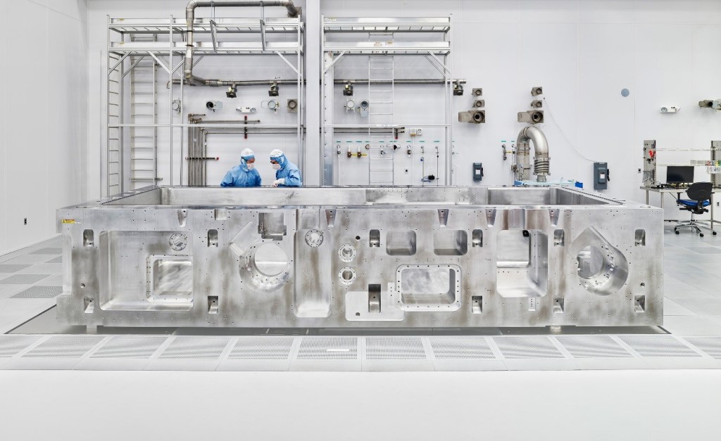 El módulo superior de la máquina de litografía UVE de ASML se construye a partir de una pieza de 17 toneladas de aluminio fresado.