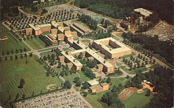 Vista aérea de los Bell Labs en Murray Hill, NJ, la sede a la que se trasladaron tras la finalización de la segunda guerra mundial