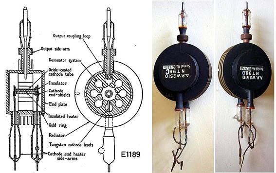 El primer magnetrón de cavidad fabricado en serie, el E1189, de la empresa General Electric Company