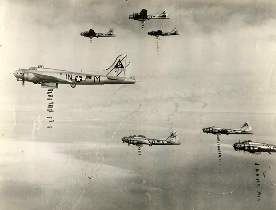 Una fuerza de bombarderos B-17 en una acción sobre la ciudad de Lohne, en marzo de 1945