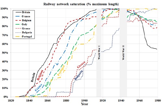 Crecimiento y difusión del ferrocarril en Europa durante los siglos XIX y XX