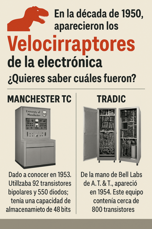🎯 Si ENIAC fue el Tyranosaurus Rex de la electrónica, en la década de 1950 aparecieron los Velocirraptores de la electrónica.