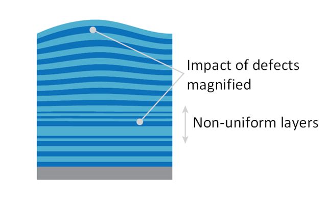 🎯 Uniformidad y planaridad al límite: cada capa extra añade errores de planitud que se acumulan y se vuelven críticos en pilas más altas. Empresas como ACM Research están implementando técnicas como rotar la oblea 180° durante la deposición, alcanzando una uniformidad de apenas el 1 % de variación.