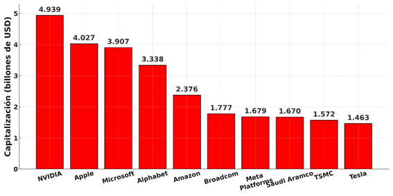 Las diez empresas más valiosas del mundo por capitalización bursátil, en noviembre de 2025