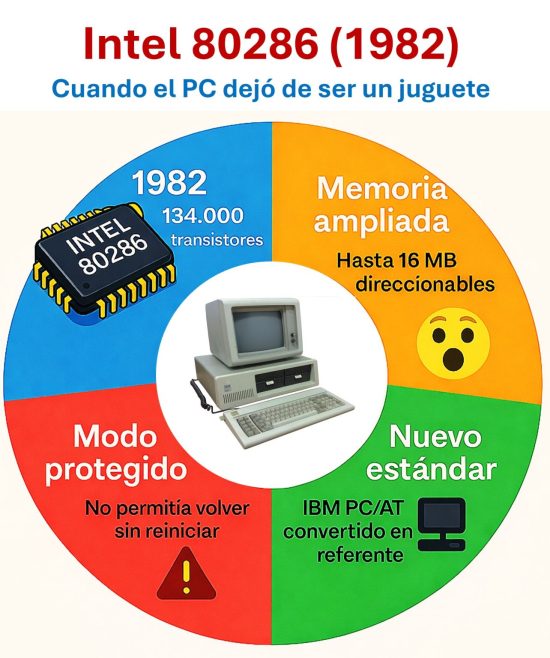 ⚠️ Eso sí, el 286 tenía una gran limitación: una vez entrabas en modo protegido, no había vuelta atrás sin reiniciar. Una arquitectura brillante, pero aún inmadura.