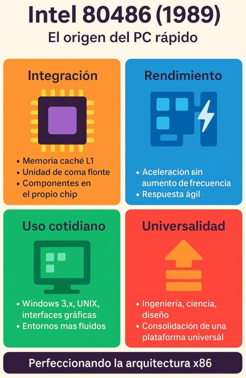 📈 Sin el 486, la explosión del PC en los años 90 no habría sido posible. Aquí se perfeccionó la fórmula que dominaría el mercado durante décadas.