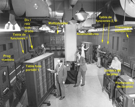 Durante décadas se perfeccionaron, pero su destino estaba sellado. La llegada de los primeros ordenadores y radares dejó claro que aquel camino tenía un límite físico insalvable. El caso del primer ordenador electrónico, ENIAC (Electronic Numerical Integrator and Computer), fue paradigmático: toneladas de peso, consumo eléctrico extraordinario y fallos constantes. La electrónica necesitaba otra cosa. La imagen muestra una panorámica general de ENIAC (https://museo.inf.upv.es/eniac-2/).