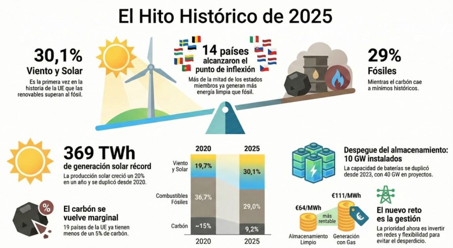 Europa cruza el Rubicón eléctrico: el año en que el viento y el sol superaron a los combustibles fósiles