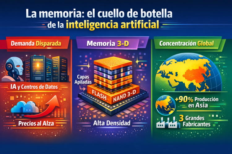 🤖 La inteligencia artificial y los centros de datos han disparado la demanda de memoria, convirtiéndola en un nuevo cuello de botella tecnológico.