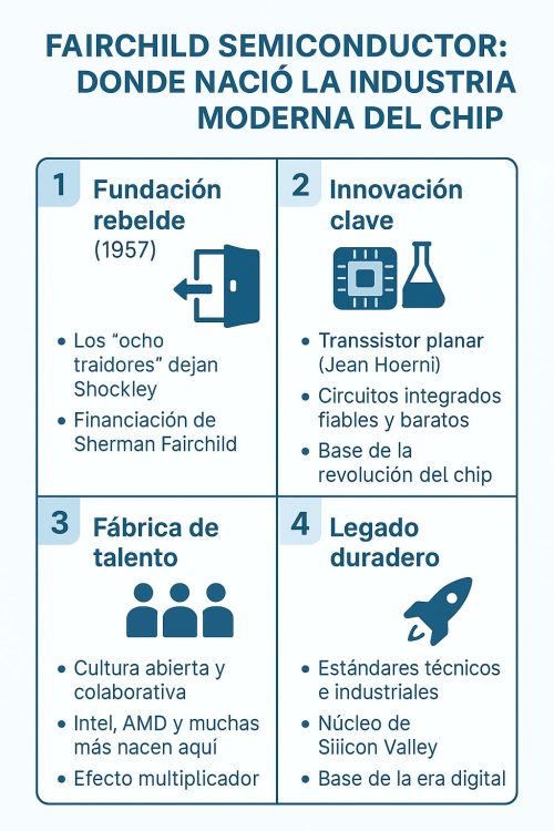 🏭🌿 Fairchild Semiconductor: donde nació la industria moderna del chip y el árbol genealógico de Silicon Valley 🧠🏭